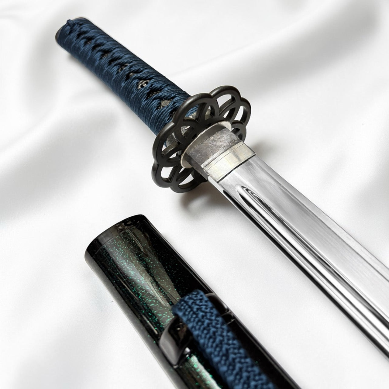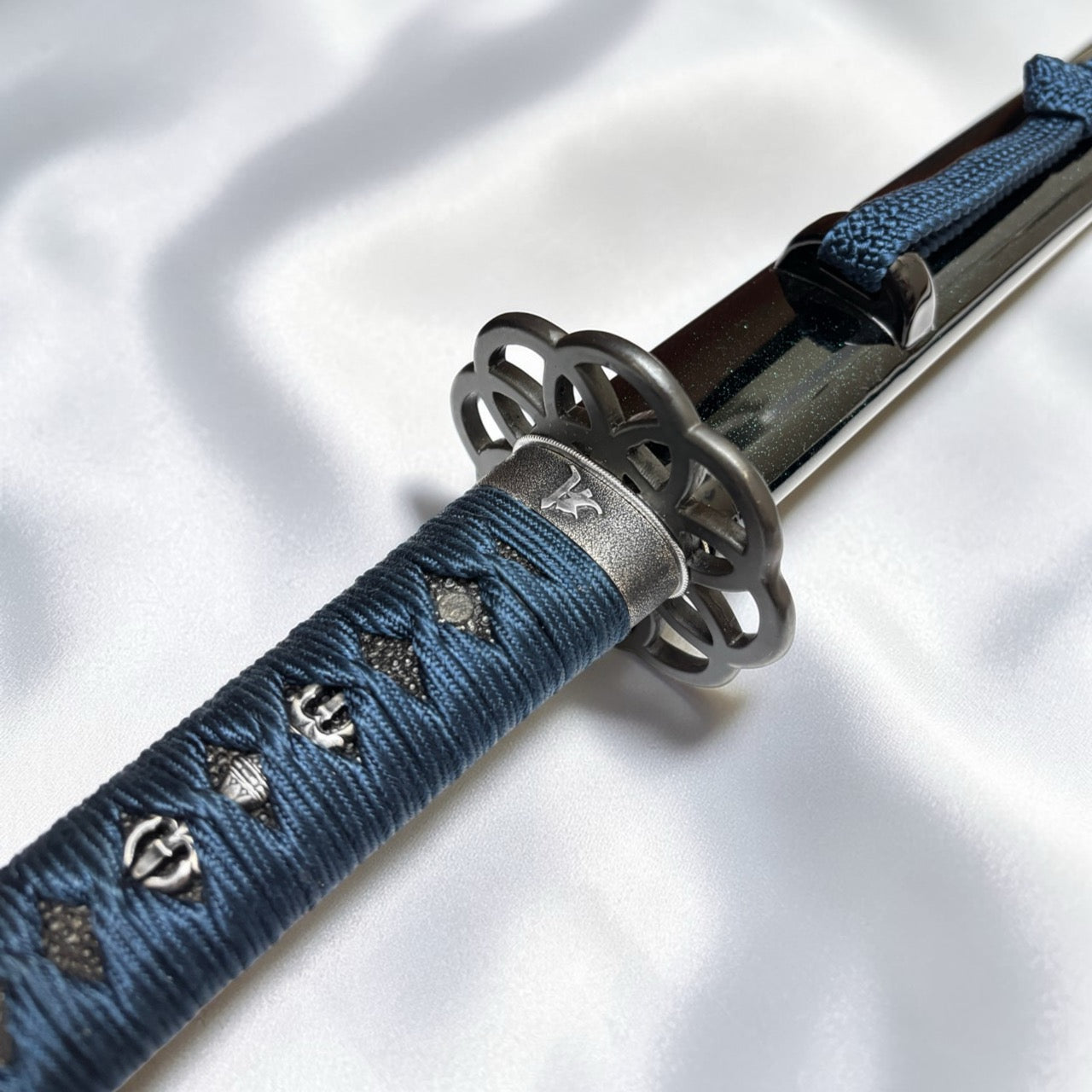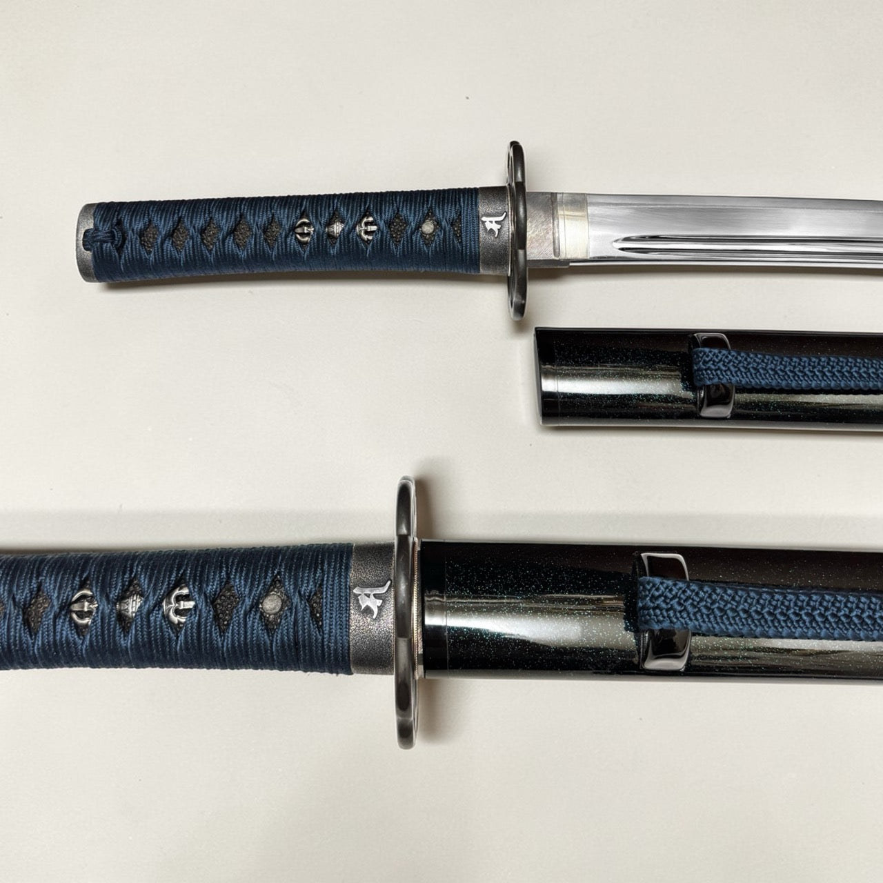 本作品特別針對金具進行了深度搭配。採用「九輪」之鍔與「梵字」緣金具,呼應地藏菩薩的守護;目貫配置象徵不動明王智慧的「獨鈷劍」。原作刀長 1尺9寸,本復刻版本亦嚴格遵循此一原始長度製作。