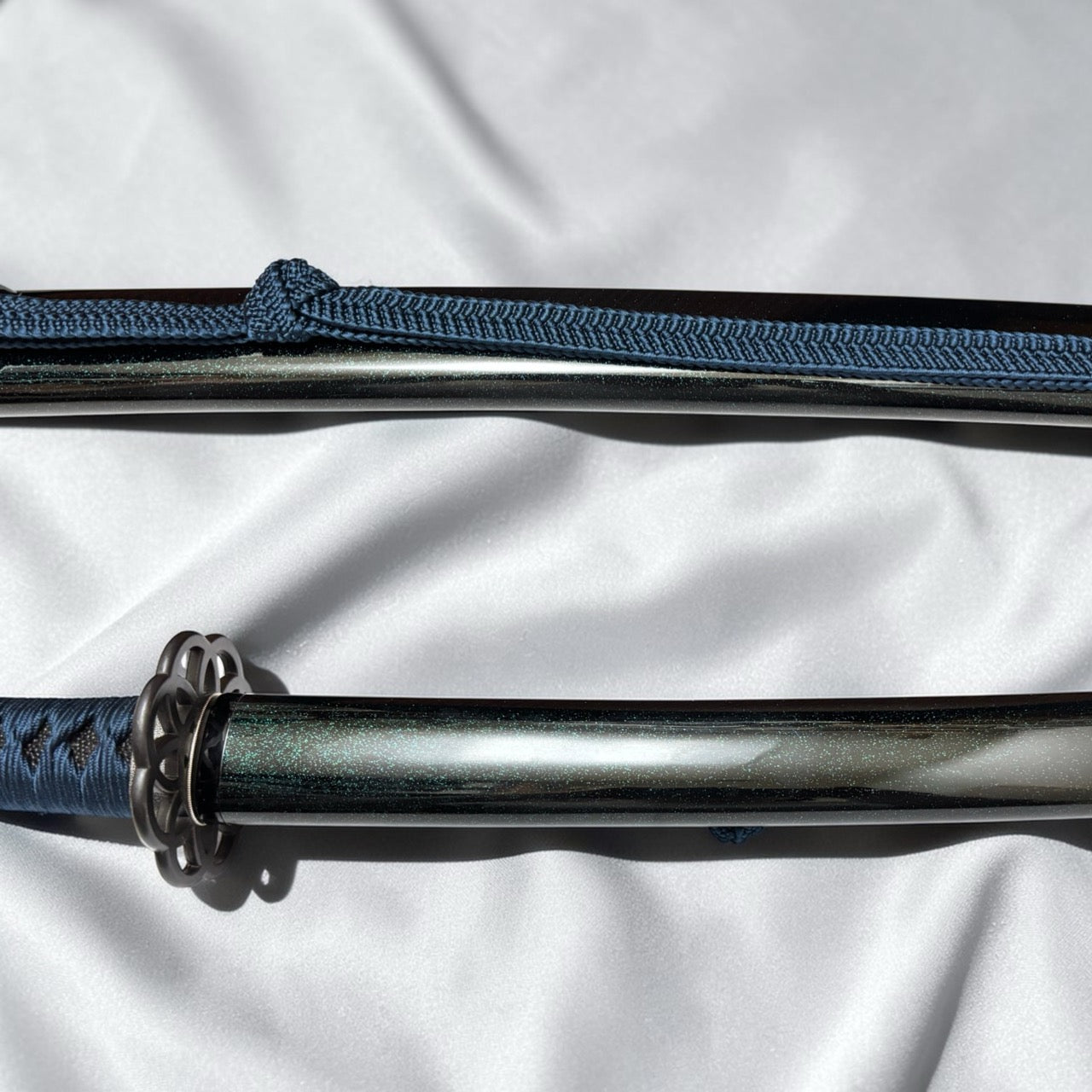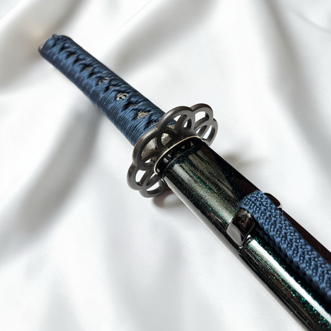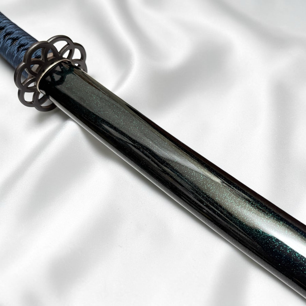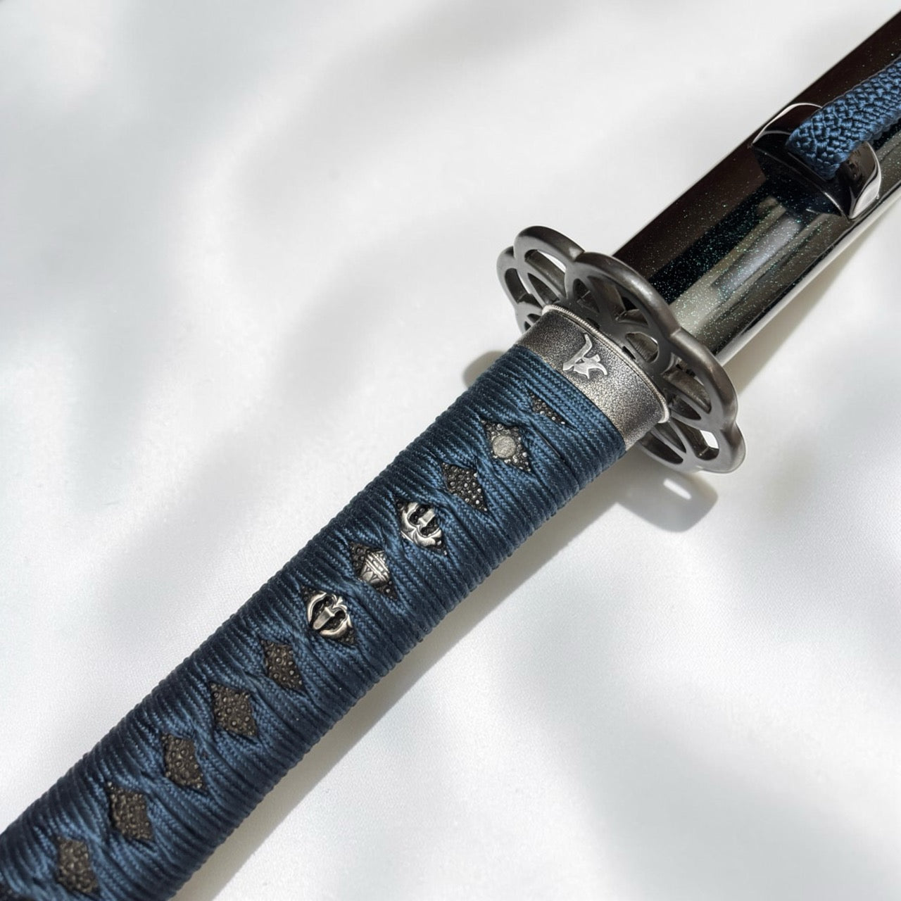 本作品特別針對金具進行了深度搭配。採用「九輪」之鍔與「梵字」緣金具,呼應地藏菩薩的守護;目貫配置象徵不動明王智慧的「獨鈷劍」。原作刀長 1尺9寸,本復刻版本亦嚴格遵循此一原始長度製作。