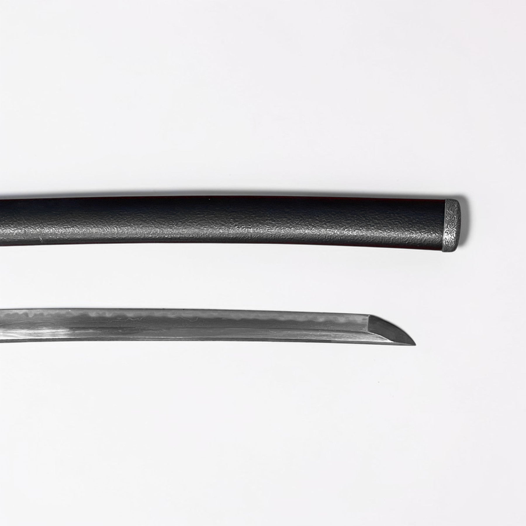 特選用古鐵玉鋼以板目肌金量鍛造之,帶有地錵、肌理清晰可見,外觀近似室町時代末期的地鐵。
