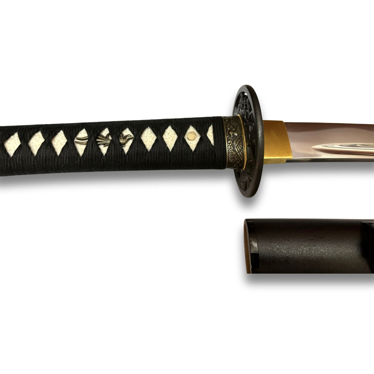 特別需要注意的是日本濃州堂的「刀鐔」是用真刀專用的鐵鐔,並且在其上使用專利真劍技術熏成的「茶鏽色」去處理。日後「刀鐔」的部分若有生鏽的狀況時,千萬不可除鏽!以免破壞其珍貴的「茶鏽色」。只需徒手用手上所殘留的保養油、素手去擦拭並推平鏽斑,這一層日積月累而成的珍貴古炮色澤─「茶鏽色」,在時間推移之下,將逐漸增厚成為保護層。